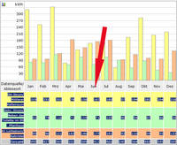 Bei einer neuen Öllieferung liest man den Ölstand ab BEVOR getankt wird und trägt diesen Wert in die Rubrik "Bestand" ein. ANSCHLIEßEND gibt man die Anzahl der Litermenge in die Rubrik "Lieferung" ein. In der Beispielgrafik wird eine Kirche gezeigt, die monatlich 500 Liter Öl verbraucht und die am 1.12.2009 1.000 Liter Öl tankt. Diese Art einzutragen gilt natürlich auch für alle anderen Fälle, in denen nicht mit Zählern erfasst wird, sondern der Bestand erhoben wird.